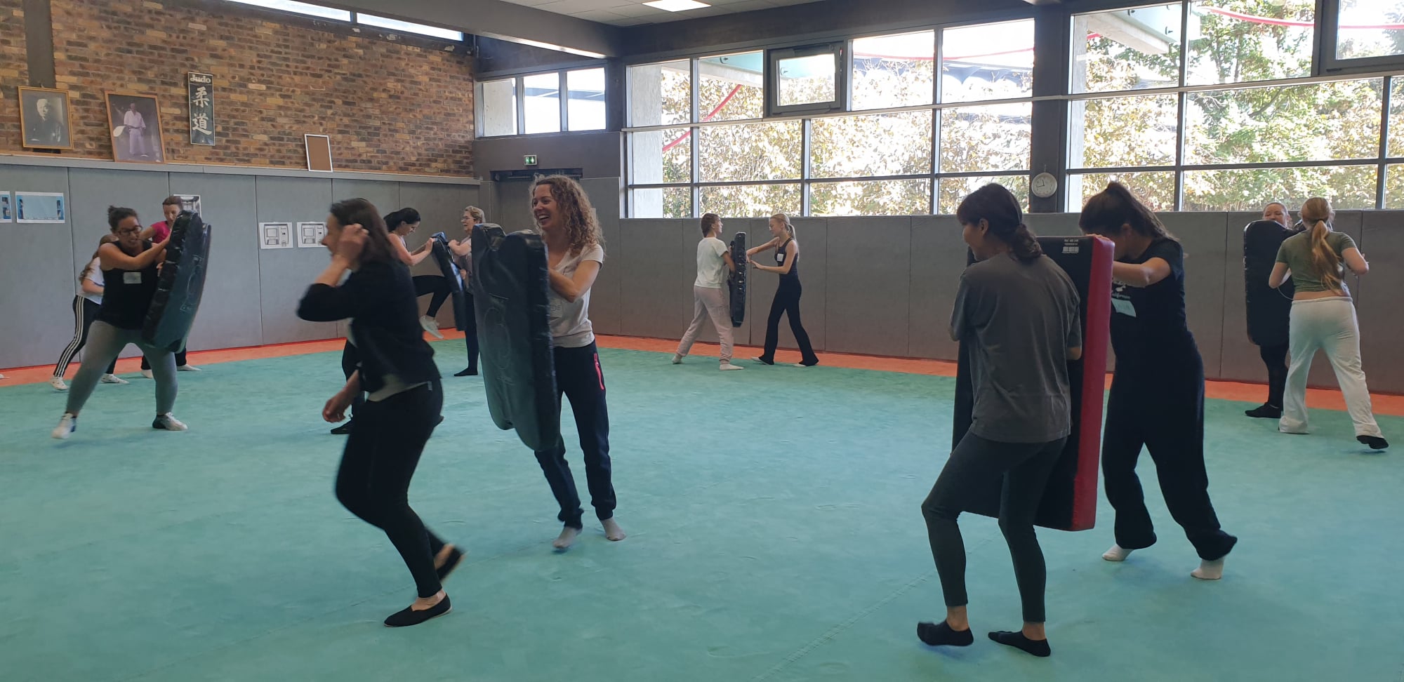 Pendant deux heures, les participantes ont pu travailler leurs frappes sur des boucliers, être sensibilisées à l'observation de leur environnement, développer leur vigilance, apprendre à se défendre avec des objets du quotidien, sans oublier le rappel du cadre légal.